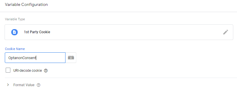 - Name it accordingly, e.g. First Party Cookie - Active Performance - OT.